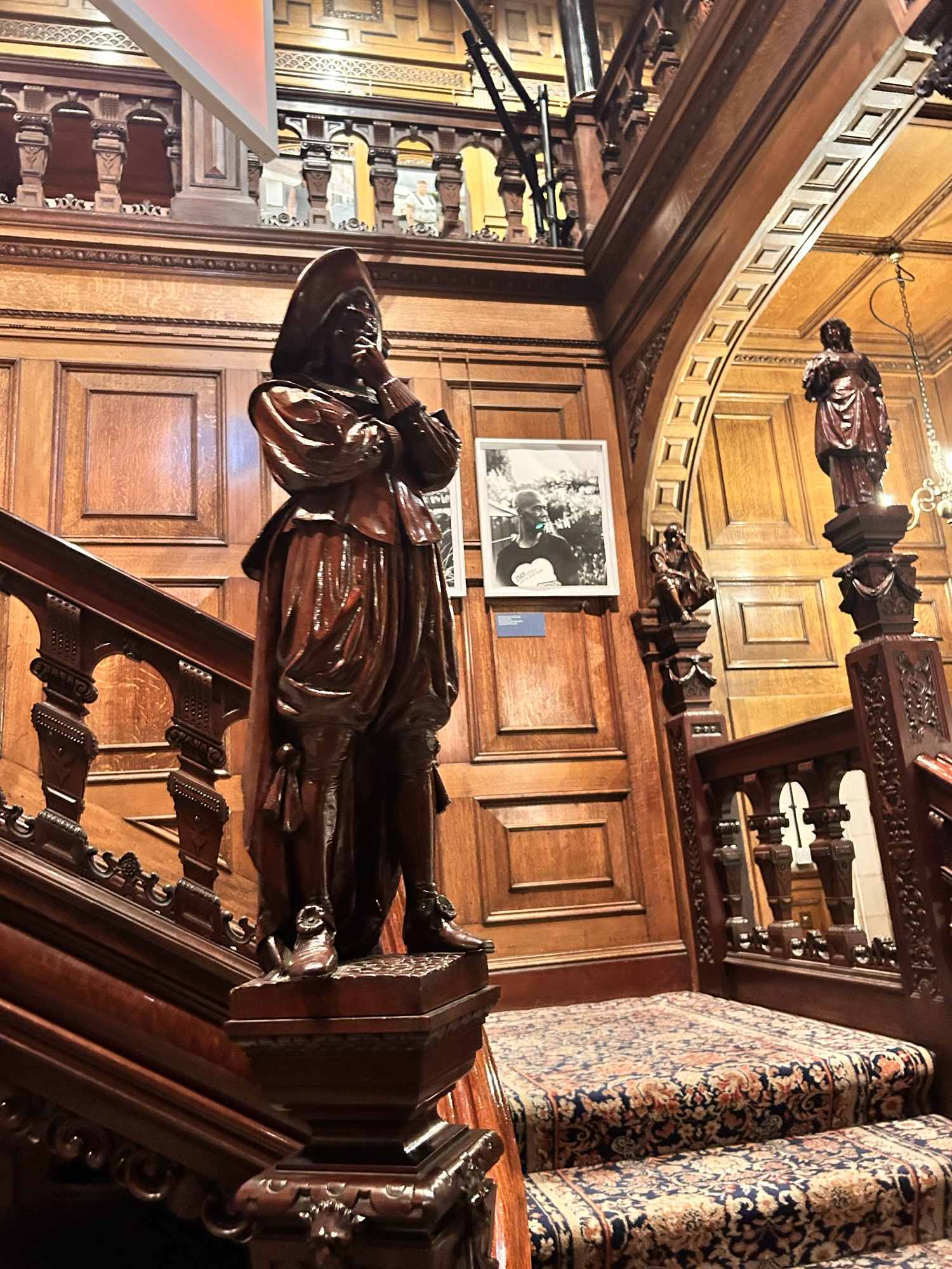 For example, Astor’s literary passion, embedded into the very artistry of the building. Who thinks to have characters from their favourite books carved into their office? I was charmed by the number I recognised, figures from The Three Musketeers, The Last of the Mohicans, and Shakespeare’s works, to name a few. Sharing this experience with my sister, also an avid reader, made it even more meaningful. She too felt the building was fascinating but it was the collection of books displayed that truly captured her interest, so much so she sat in the beautiful study and read for some minutes whilst I continued touring the halls.
